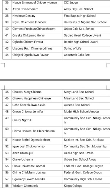 The under listed students are the successful beneficiaries who were found to be in WAEC class and whose official WAEC fee has been paid by Hon. Sam Ngene.